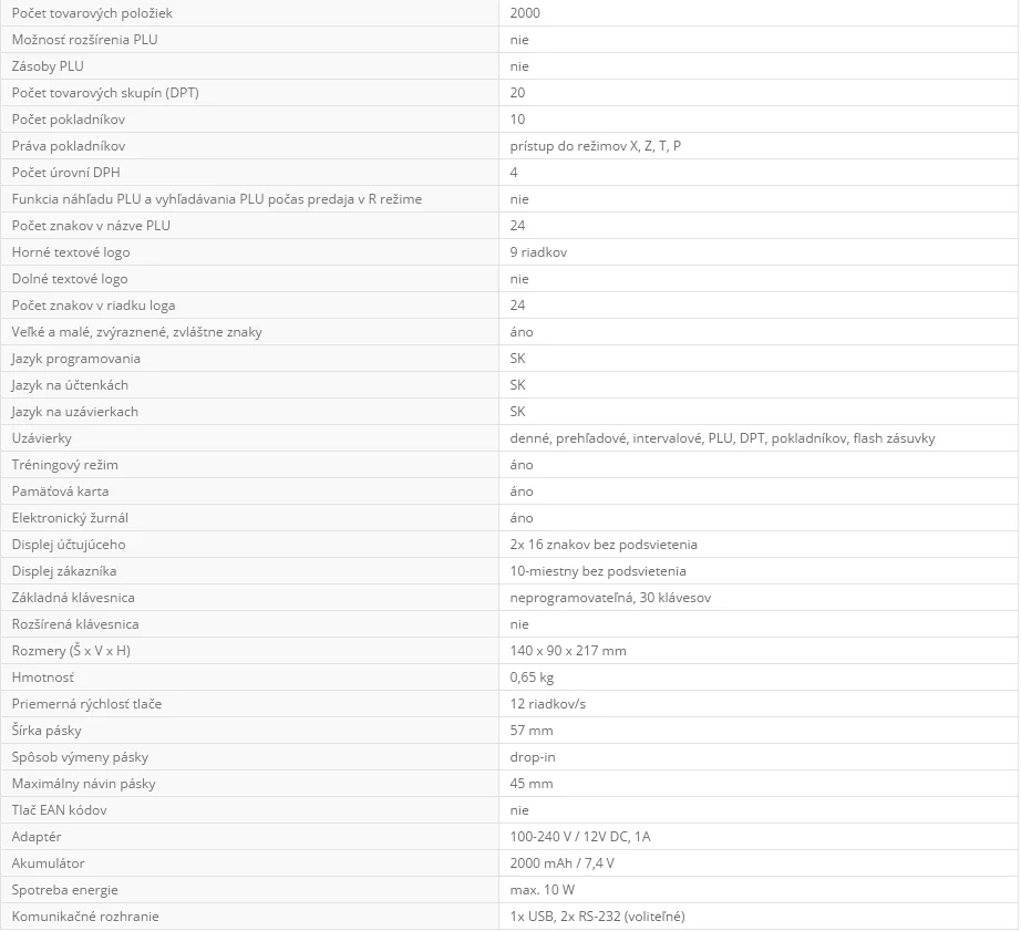 | Počet tovarových položiek | 2.000 |