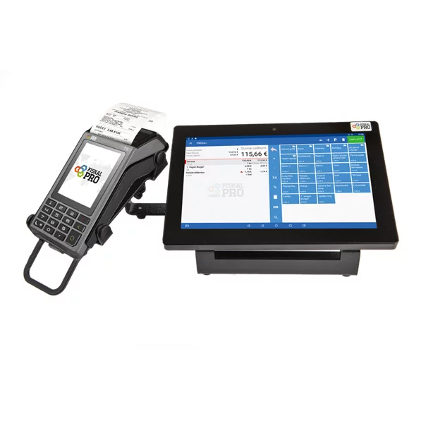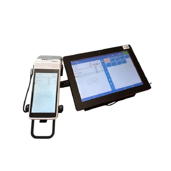 Zariadenie FiskalPro SET ponúka hotové riešenie pre eKasu. Dotykový pokladničný terminál FiskalPRO je vhodný pre pevné prevádzky, predaj tovaru, služieb aj gastro segment. Uchytenie tabletu a platobného terminálu s fiškálnou tlačiarňou v kompaktnom, masívnom stojane. Možnosť pripojenia externých zariadení (skener čiarových kódov, peňažná zásuvka, digitálna váha).