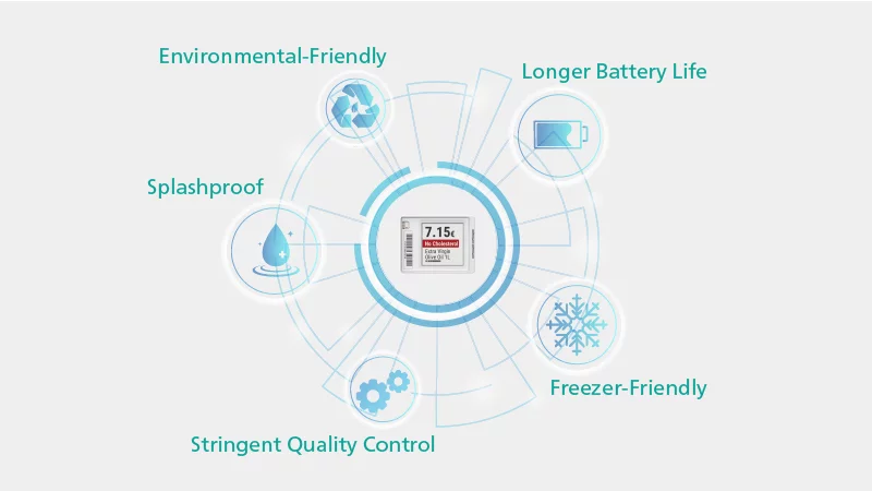 Dlhšia životnosť batérie - Vďaka vylepšenej životnosti batérie až na 10 rokov naša nákladovo efektívna digitálna cenovka výrazne znižuje drahocennú pracovnú dobu potrebnú na výmenu batérie a minimalizuje akýkoľvek dopad na životné prostredie spôsobený častou likvidáciou batérií.