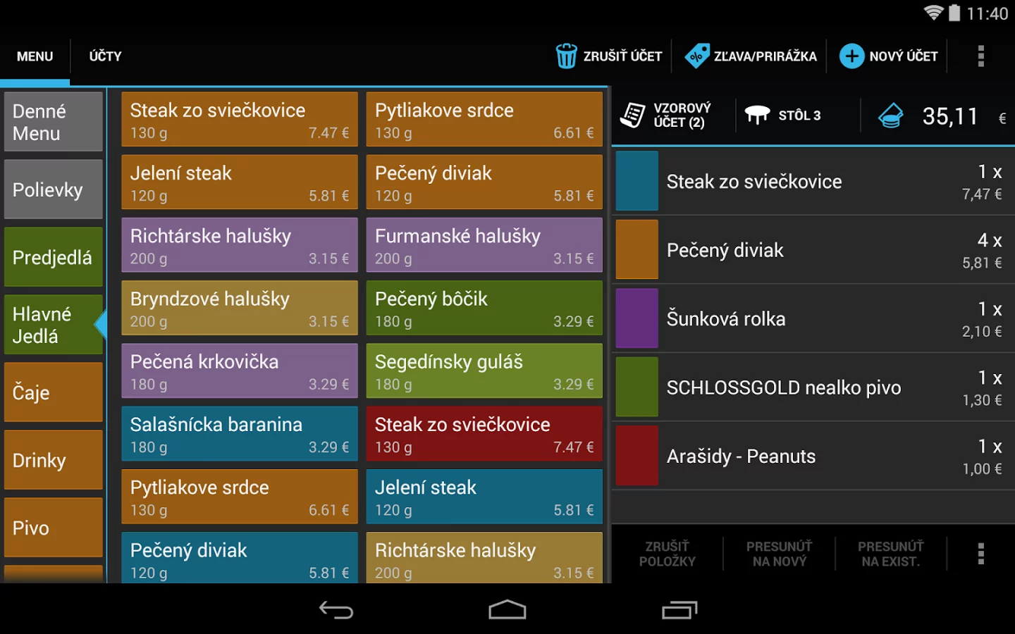 Môžete vytvoriť si prehľadné menu s farebne rozlíšenými kategóriami i položkami. Pre ľahší štart môžete využiť import z excelu. Konečnú podobu doladíte ľahko a intuitívne priamo na tablete.