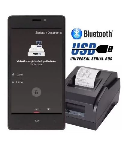 Podporuje tlač z Virtuálnej Registračnej Pokladnice. Pri nastavení možnosti tlače z VRP je potrebné prostredníctvom Google Play stiahnutie aplikácie "Pokladnica".