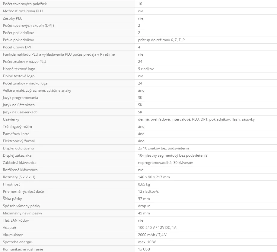 | Šírka termo pásky | 1 × 57 mm | 1 × 57 mm |